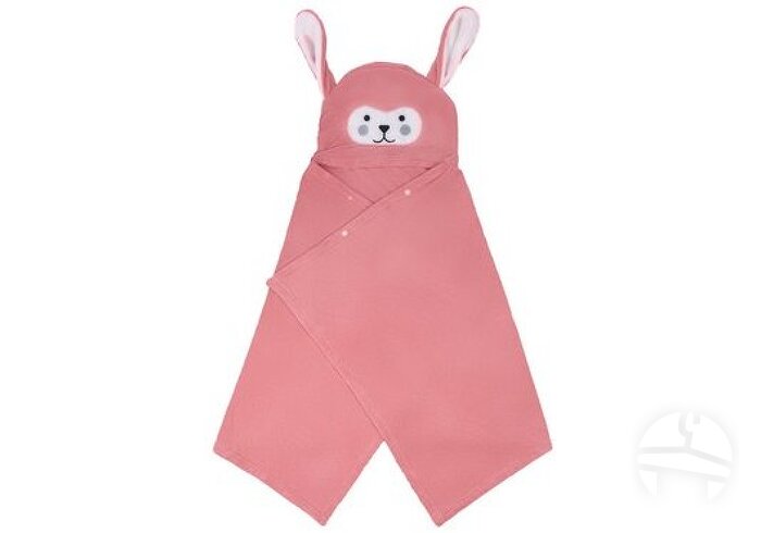 Žaismingas vaikiškas rankšluostis-pledas su gobtuvu ir spaustukais. Minkštas pliušinis audinys.