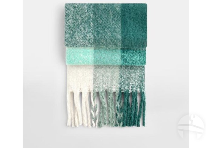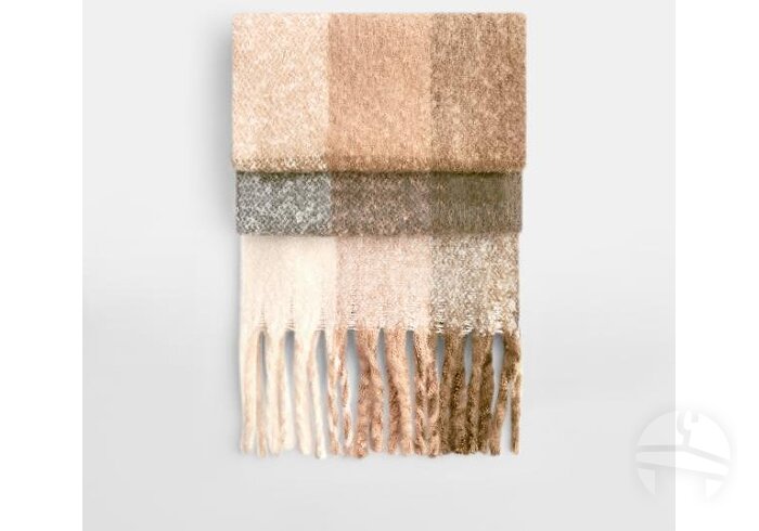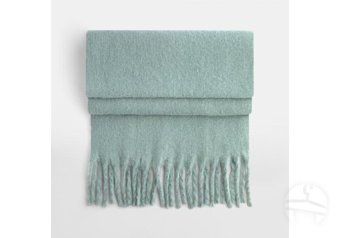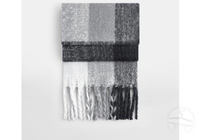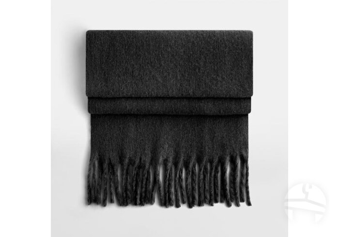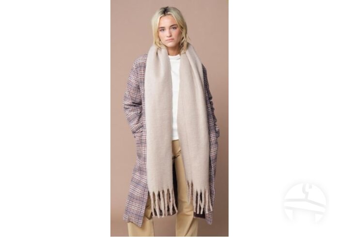 Minkštas didelis šalikas iš GRS sertifikuoto perdirbto poliesterio. Prabangus minkštas audinys, oversize dizainas, su stambiais kutais.